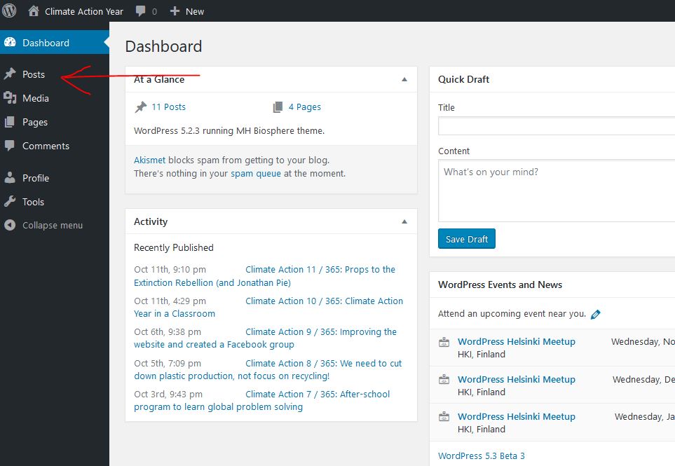 Then click Posts on the left top corner