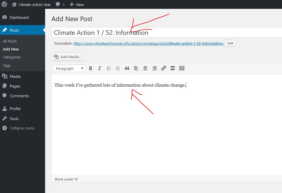 Just ask for a user account from Marko Koskinen (marko@climateactionyear.info) and then start posting as you would to the social media described above. Optimally you could do both.