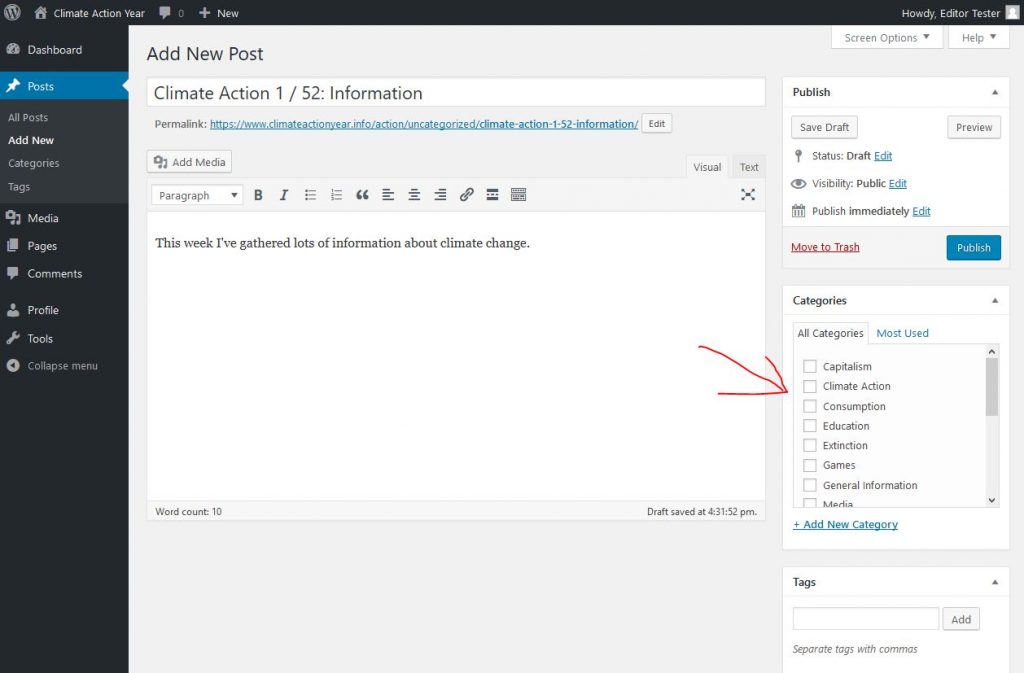 Then check the Categories that best suit your Climate Action from the Categories list on the right side of the screen. You can select multiple categories.